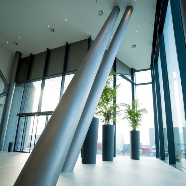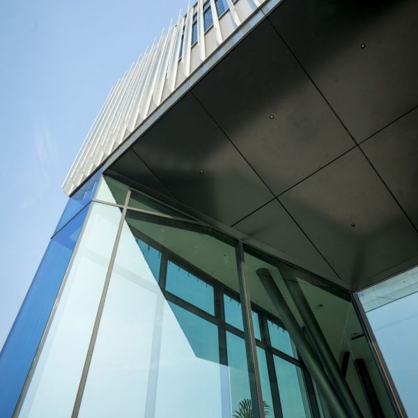 Non da ultimo, i frangisole in lamiera di alluminio con geometria e foratura custom, dal design unico e su misura, conferiscono un tocco di raffinatezza, frutto della collaborazione con lo studio Quoin.