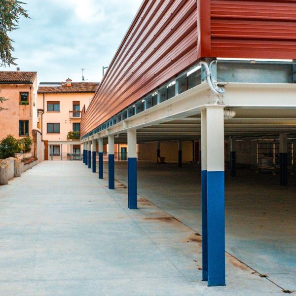 Il parcheggio multipiano di Vicenza si inserisce in una tendenza sempre più consolidata nell'edilizia contemporanea: l'utilizzo dell'acciaio come materiale d'elezione per interventi di densificazione e riqualificazione nei contesti urbani consolidati.