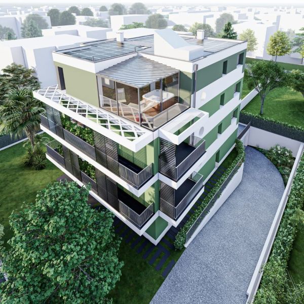 La nuova Palazzina di Via Chiminelli, ai margini del centro storico di Vicenza, nasce dalla demolizione di un fabbricato degli anni Sessanta e dalla volontà di costruire un edificio contemporaneo capace di dialogare con il tessuto urbano esistente. Il progetto architettonico, firmato dall’Architetto Alessandro Basso con Francesco Tomba, reinterpreta il rigore formale delle architetture signorili degli anni Trenta e Quaranta, attraverso grandi aperture finestrate, oblò e frangisole orizzontali con motivo a rombi.